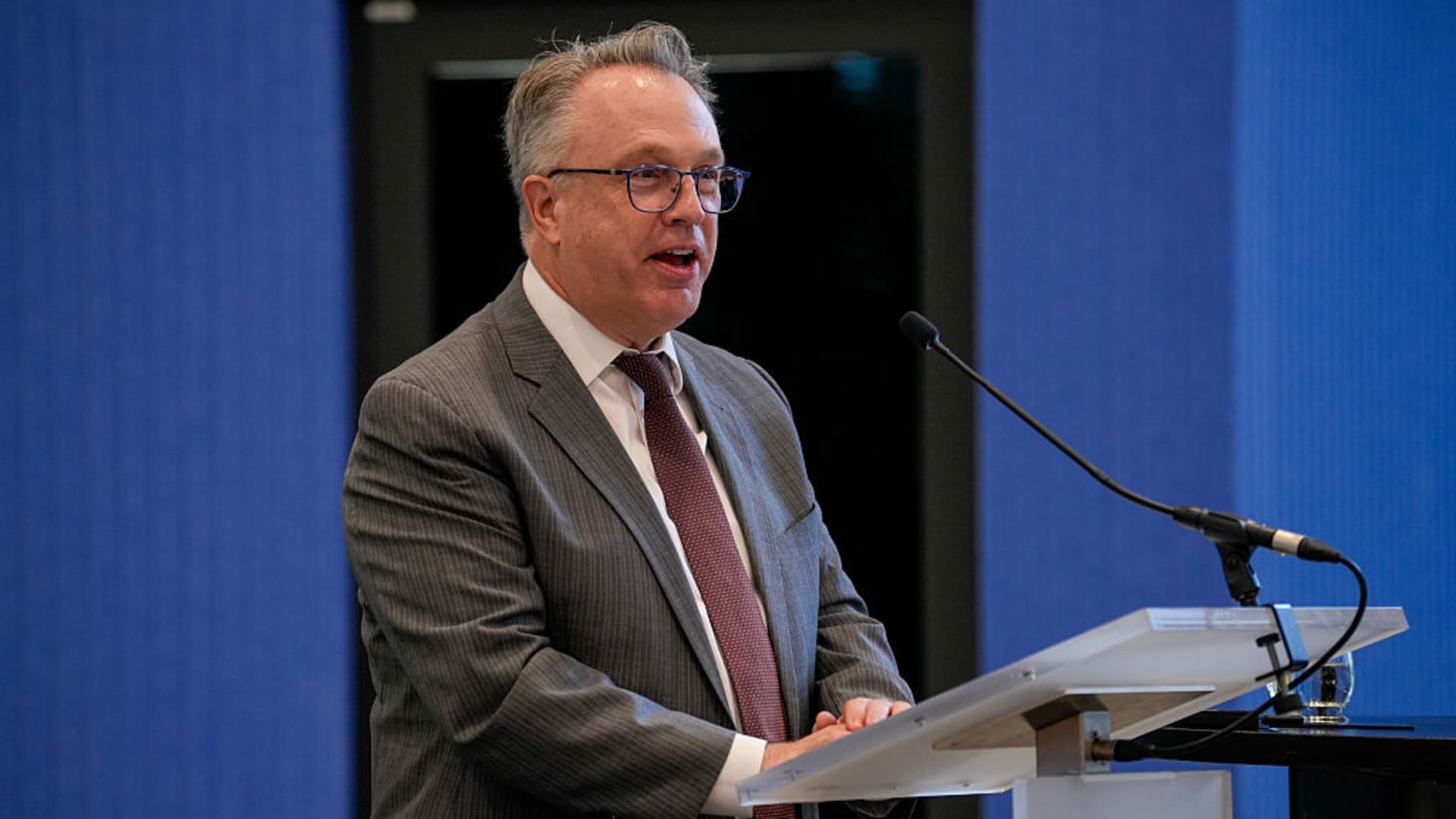 John Williams, President and Chief Executive Officer of the Federal Reserve Bank of New York, attends a farewell symposium for former President of Dutch Bank NV, Klaas Nott, held at the Central Bank Headquarters in Amsterdam, Netherlands, on Friday, October 3, 2025.