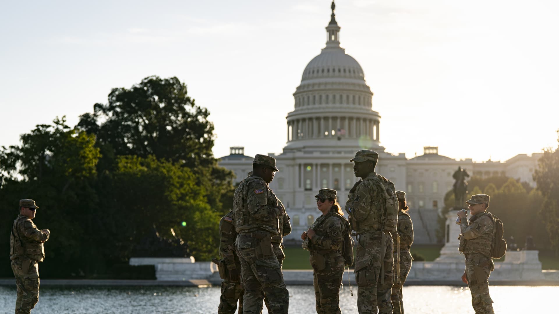 National Guard members patrol near the U.S. Capitol in Washington, D.C., on October 1, 2025.