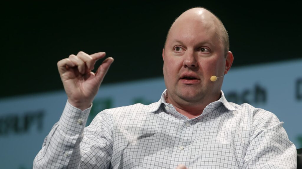 Venture capitalist Marc Andreessen speaks at the TechCrunch Disrupt conference in San Francisco on September 13, 2016.