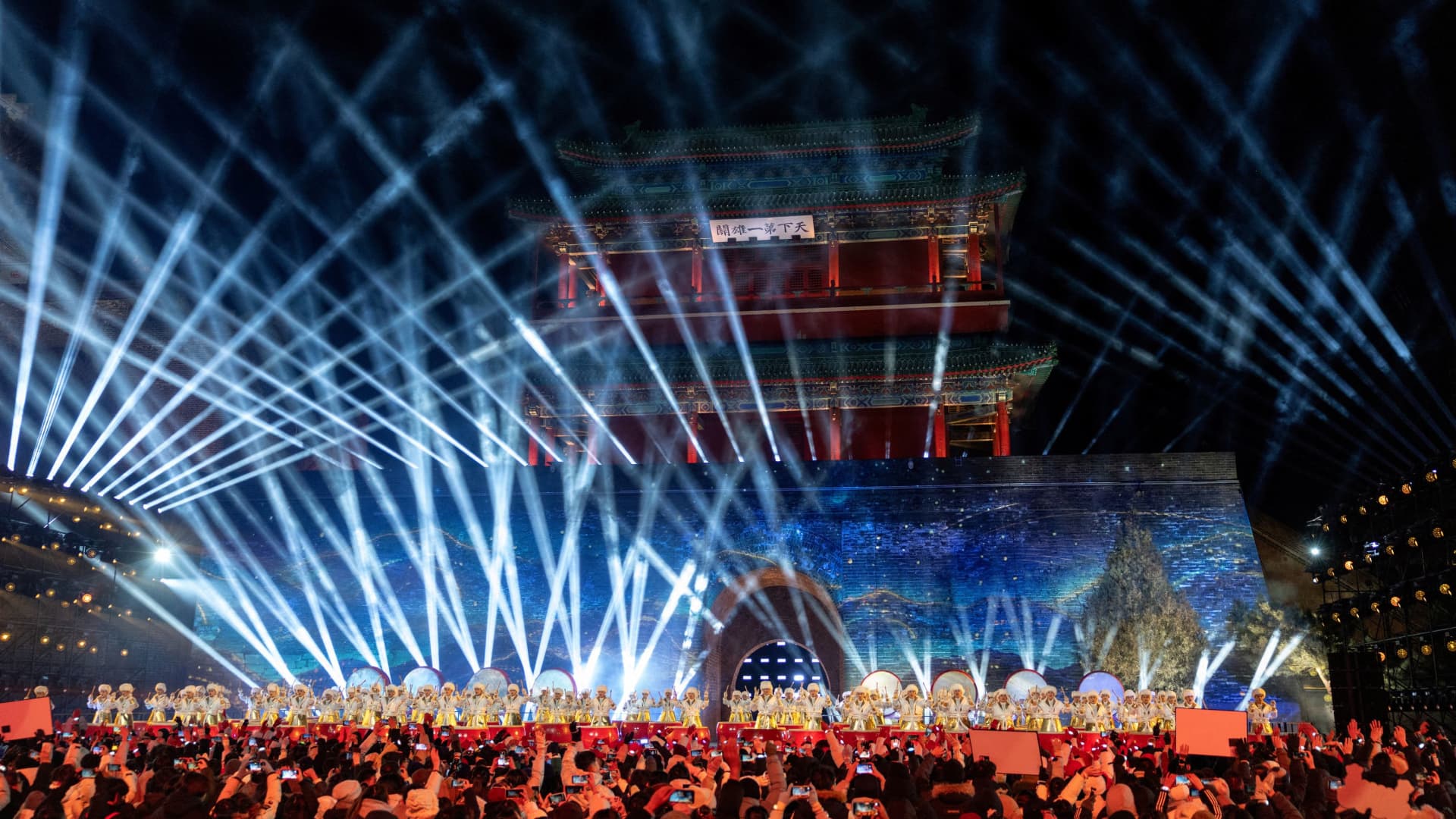 People celebrate the New Year during a ceremony at the Juyongguan Great Wall (also known as Juyongguan) in Beijing, China, January 1, 2026.
