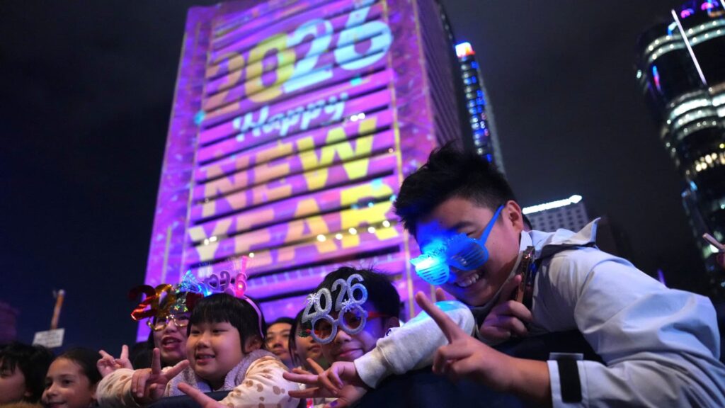People celebrate the New Year at the Bank of China building in Central, Hong Kong, China, January 1, 2026.