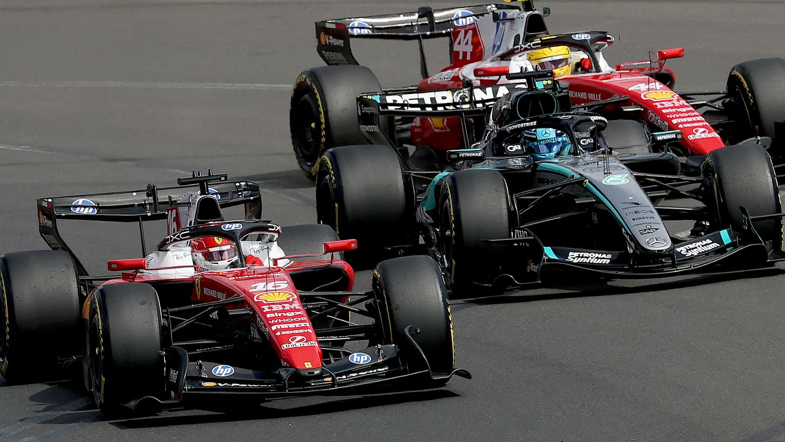 At the Australian Grand Prix, George Russell and Charles Leclerc battle for P1, while Mercedes and Ferrari race.