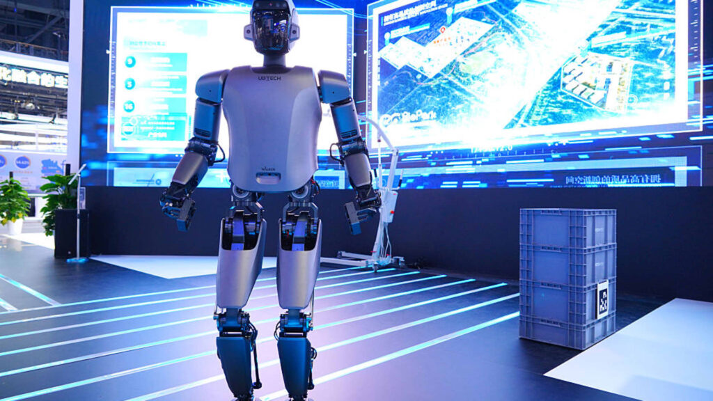 UBTech’s humanoid robot will be exhibited at the 27th China Beijing International High-tech Expo to be held at the China National Convention Center in Beijing, China on May 8, 2025.