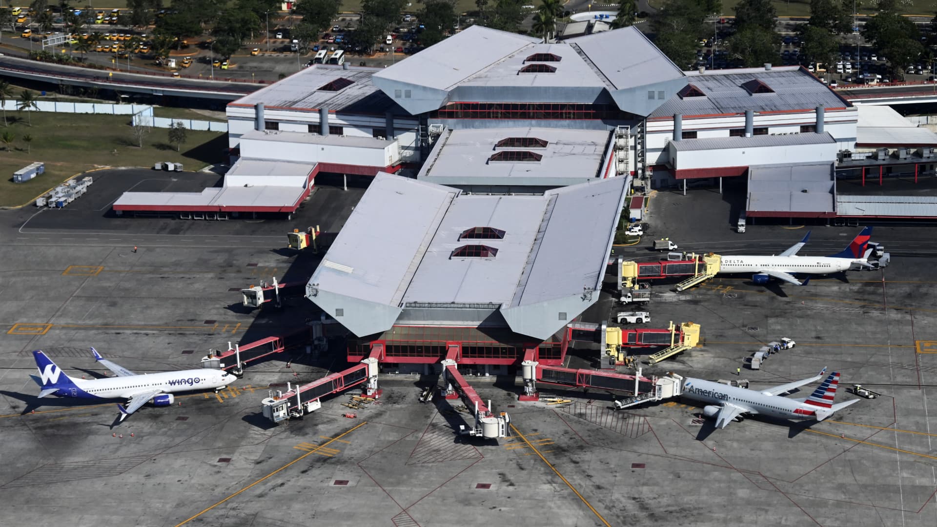 Aerial view of Havana’s Jose Marti International Airport taken from an airplane on April 3, 2025.