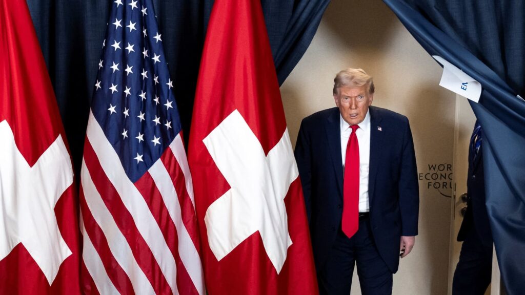 U.S. President Donald Trump arrives ahead of a bilateral meeting at the Congress Center on the occasion of the 56th World Economic Forum (WEF) Annual Meeting in Davos, Switzerland, Wednesday, January 21, 2026.