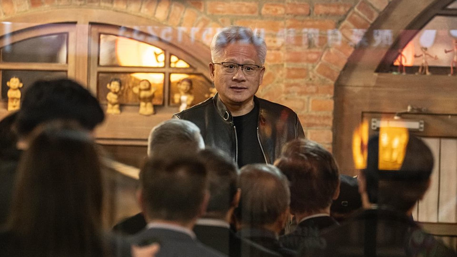 Nvidia CEO Jensen Huang speaks at a dinner event with the company’s Taiwanese suppliers in Taipei, Taiwan, Saturday, January 31, 2026.