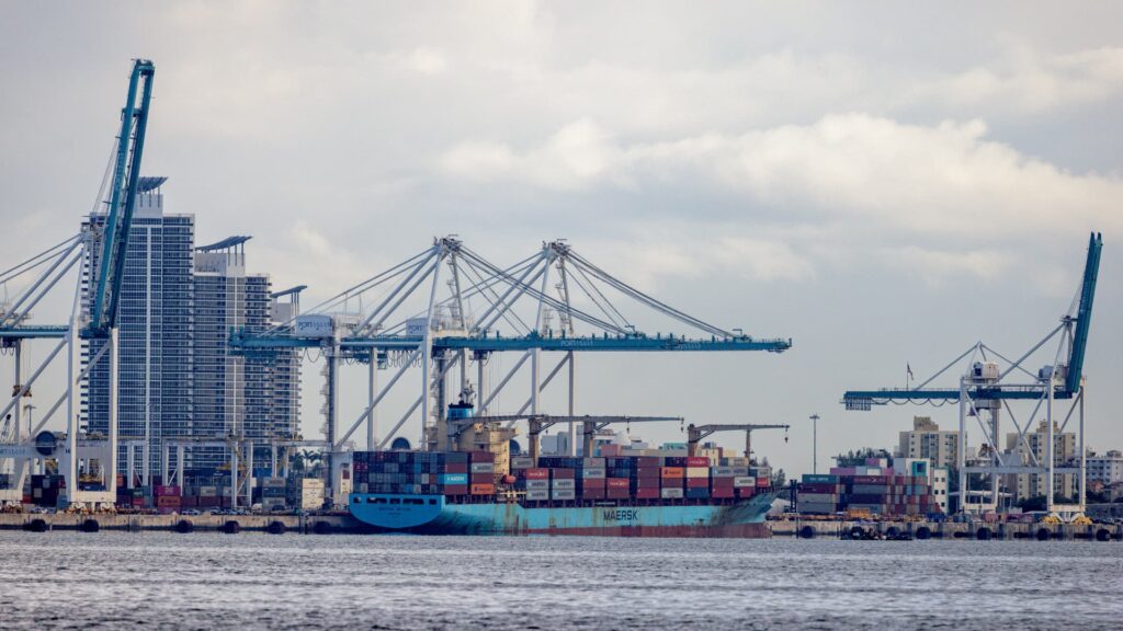 Maersk Neston container ship at Port Miami, Miami, Florida, USA, Wednesday, January 7, 2026.