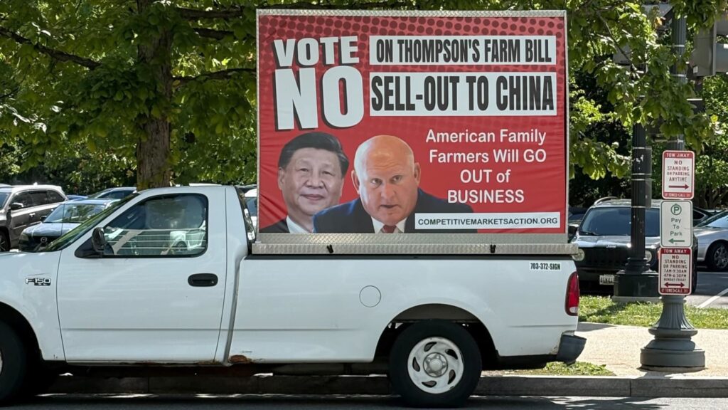 A billboard protesting Speaker Glenn Thompson’s farm bill in Washington, D.C., April 30, 2026.