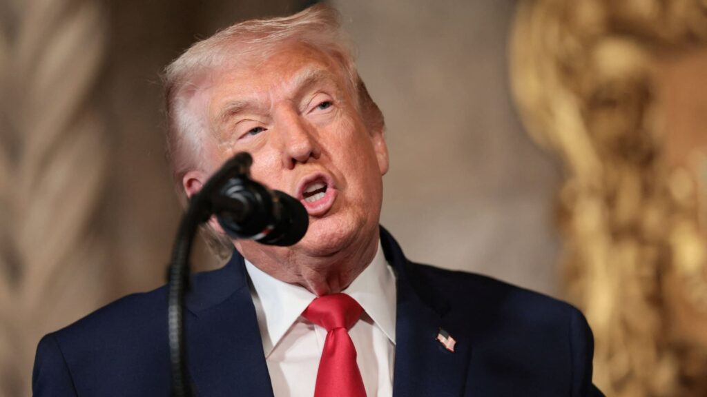 U.S. President Donald Trump announces the Navy’s “Golden Fleet” at Mar-a-Lago in Palm Beach, Florida, on December 22, 2025.
