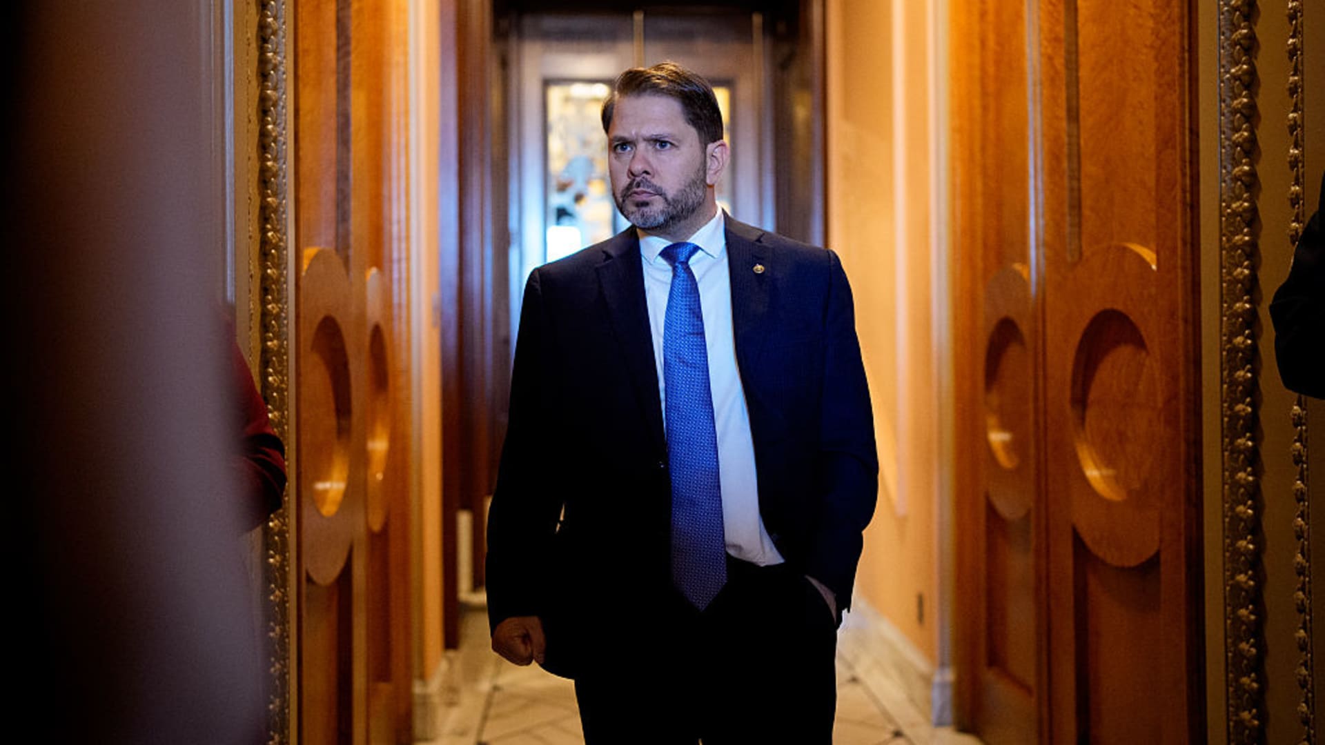 Sen. Ruben Gallego (D-AZ) emerges from the Senate chamber at the U.S. Capitol on October 1, 2025 in Washington, DC.