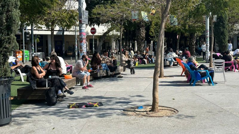 “It’s calmer than previous rounds,” said Robin Isberg, a Boston native who was relaxing in the plaza with two friends in their 20s. “The atmosphere is not so grim. The last Iran war (June 2025) was like boot camp for us. We had to be ready in seconds with backpacks, portable chargers, snacks and water. I don’t know if it’s because we’ve built resilience or if it’s just become the new normal.”