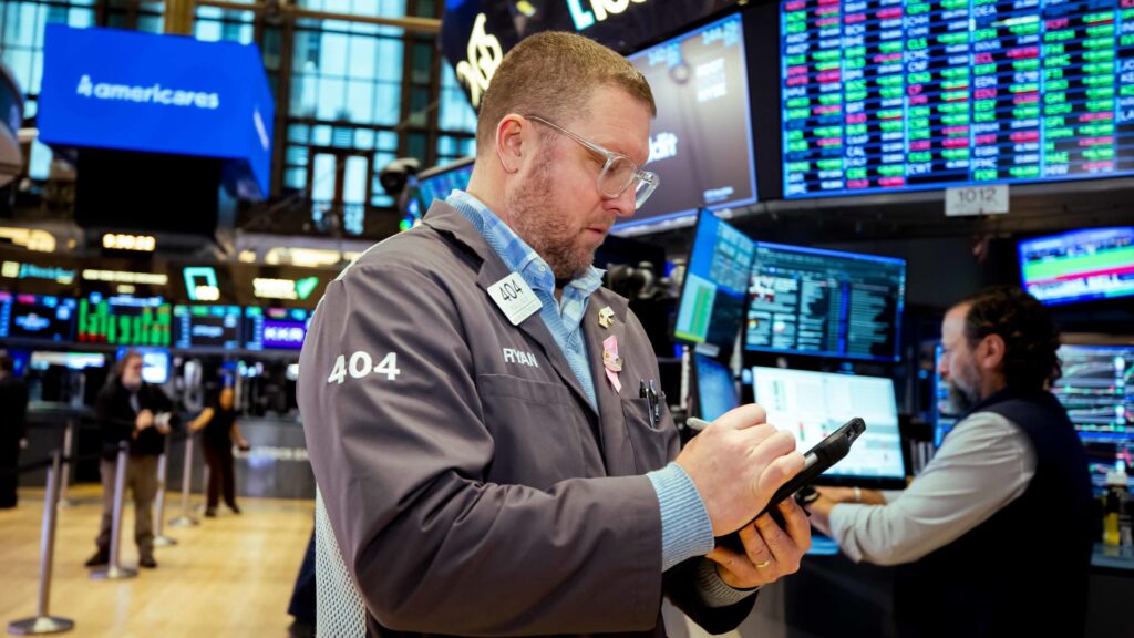 Traders at work at the New York Stock Exchange on February 25, 2026.