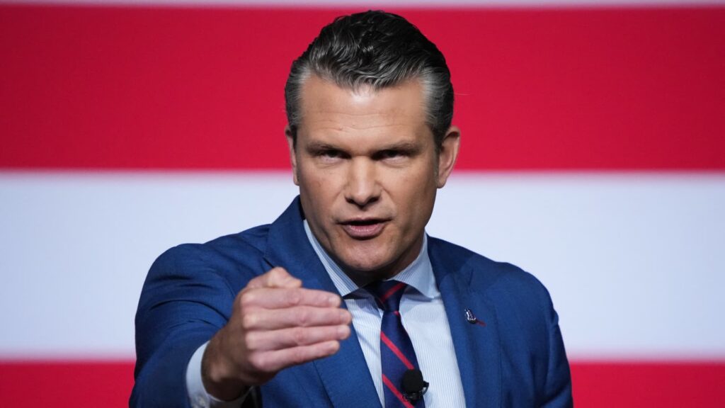 U.S. Secretary of Defense Pete Hegseth speaks to military leaders at Marine Corps Base Quantico, Virginia, on September 30, 2025.