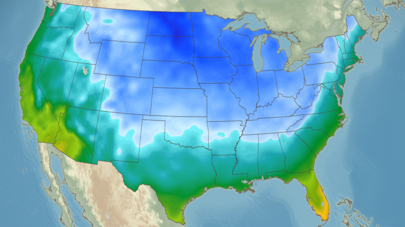It all starts this weekend when a cold front begins to spread December-like air from near the North Pole across the northern United States. This front will move further south and east over the weekend, potentially bringing temperatures 10 to 15 degrees below average across most of the region east of the Rocky Mountains by Sunday night.