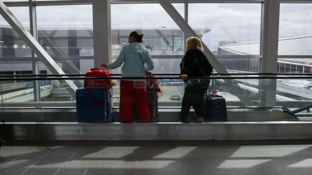 Travelers in Terminal 1 at John F. Kennedy International Airport in New York on March 1, 2026.