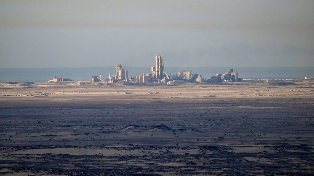 This aerial photo shows the outskirts of the Yanbu factory before the 12th stage from Yanbu to Yanbu, Saudi Arabia, on January 19, 2024.