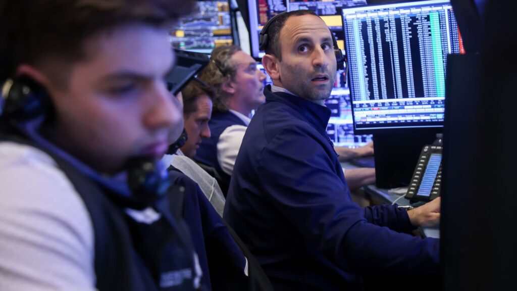 Traders work on the floor of the New York Stock Exchange on March 27, 2026.