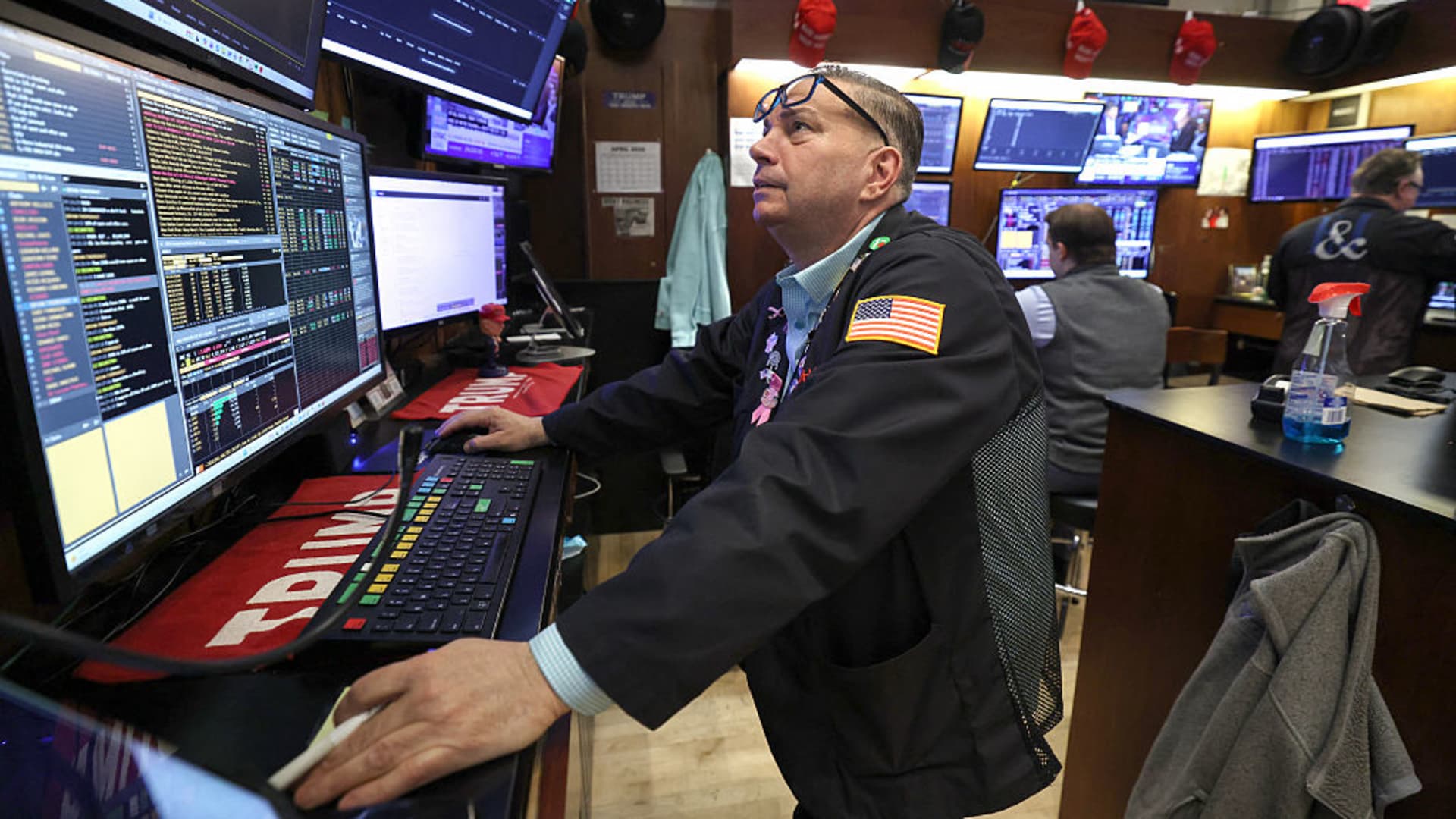 Traders work on the floor of the New York Stock Exchange (NYSE) as the opening bell rings on April 16, 2026.