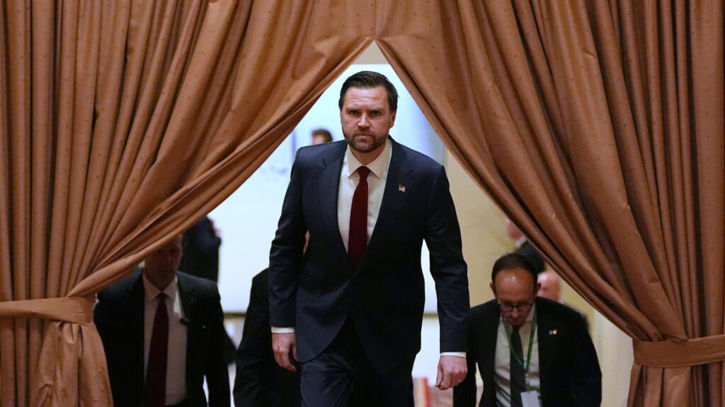 U.S. Vice President J.D. Vance (C) arrives for a meeting with Pakistani Prime Minister Shehbaz Sharif in Islamabad, Pakistan, April 11, 2026.