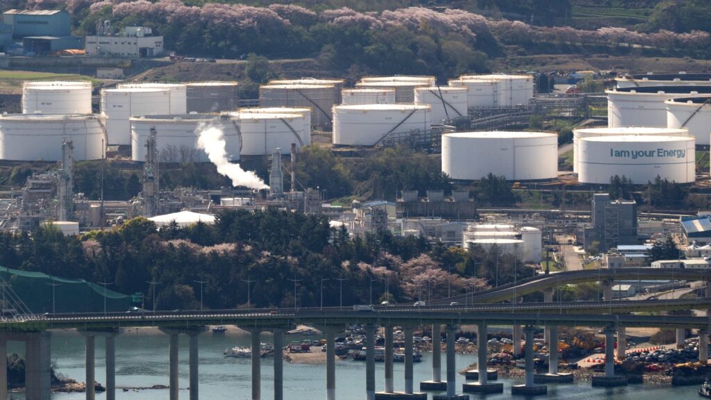 This overview shows oil tanks and facilities at Yeosu National Industrial Complex, South Korea’s largest petrochemical industrial complex, in Yeosu City, April 7, 2026. (Photo by Shin Yong-ju / AFP via Getty Images)