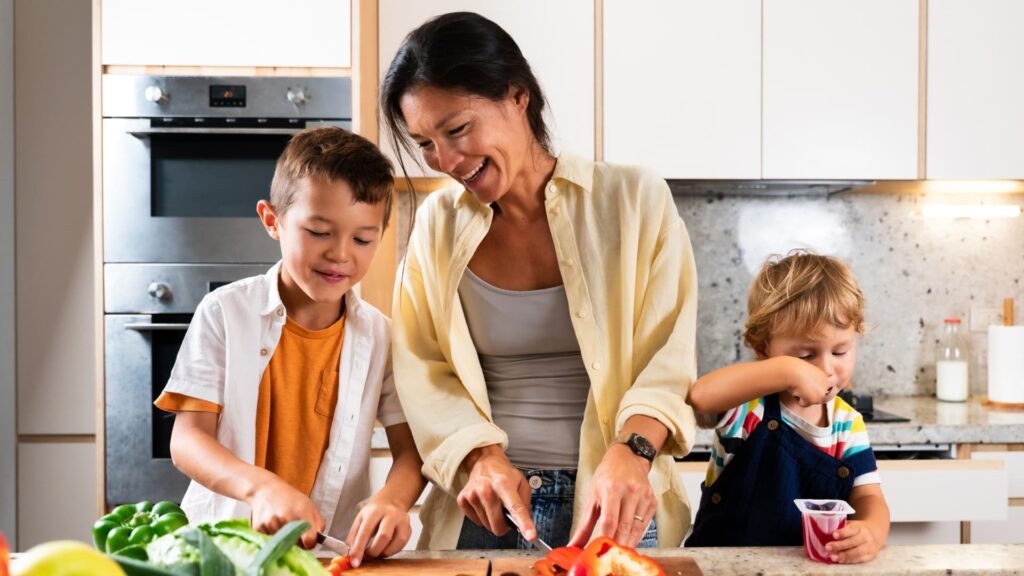 But healthy eating doesn’t require a meal kit subscription or a daunting grocery budget. A typical weeknight dinner in my house with two toddlers, a puppy, and no extra time has to be quick, fiber-rich, and something the kids will actually eat.